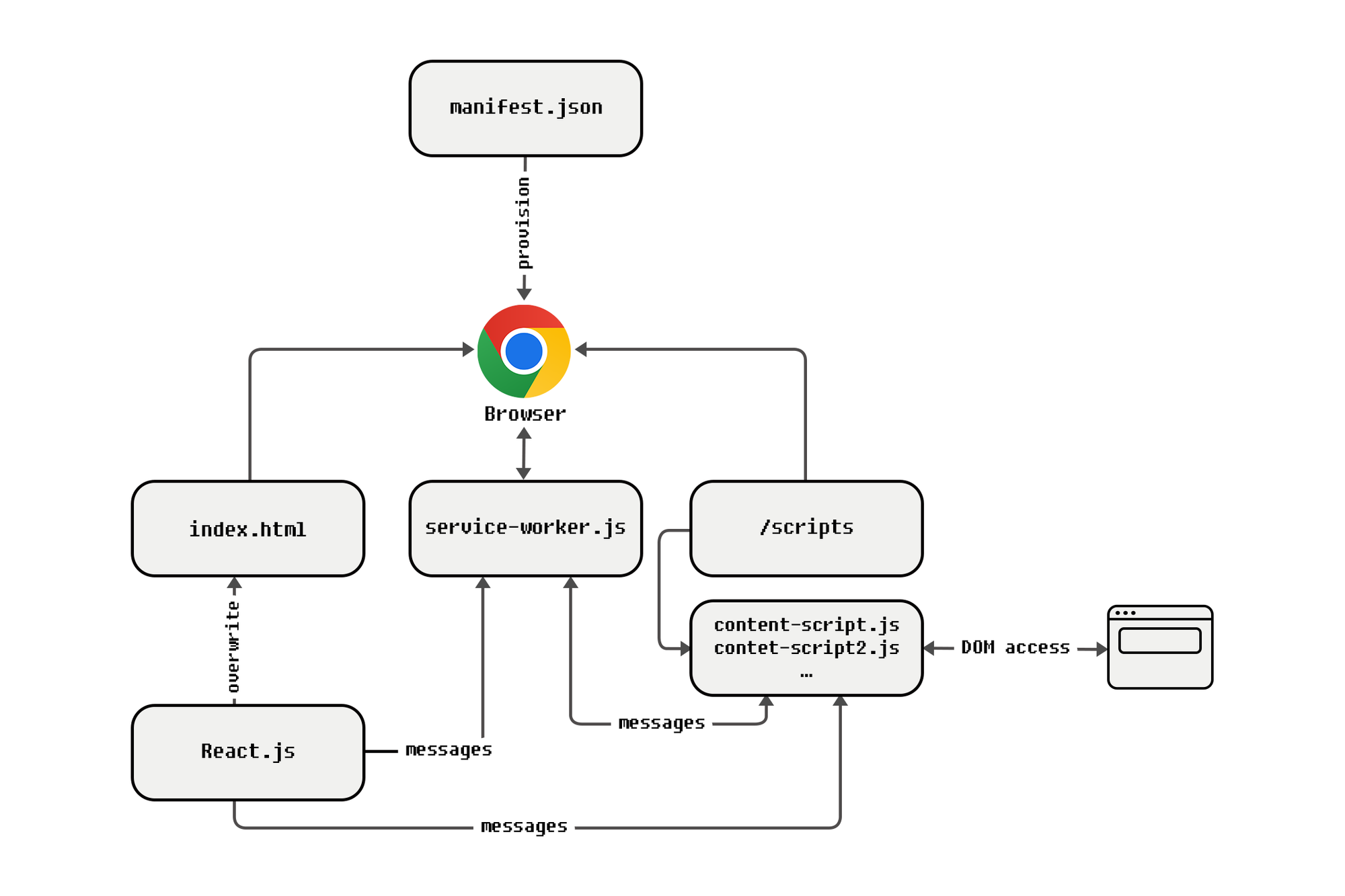 Content scripts enable the rendering process of pages to be customized, making it possible for any webpage to have Blink interactions—if, of course, an extension is authored to recognize the appropriate HTML patterns and metadata.