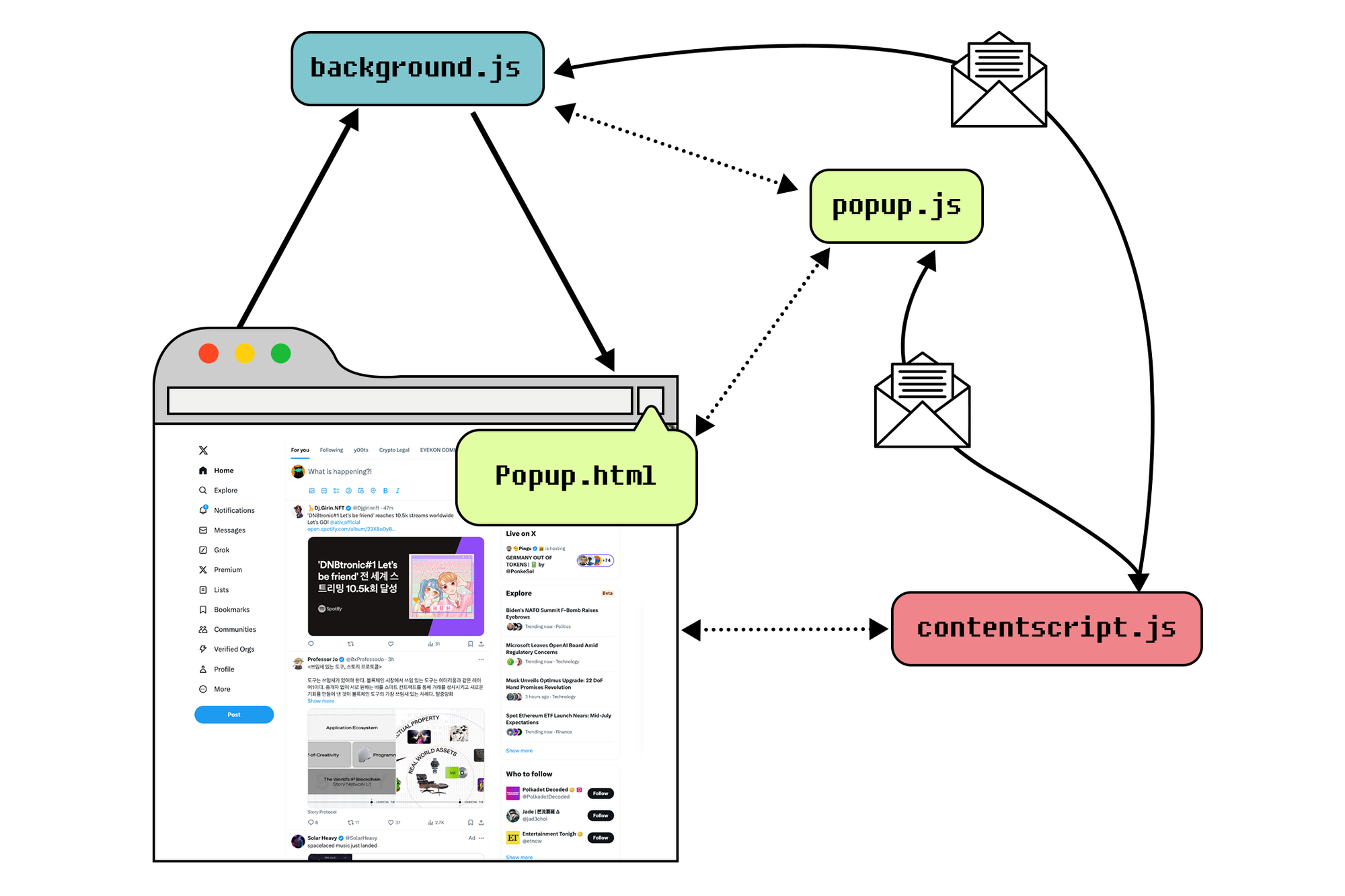 This is not only exclusive to Twitter, as this approach can even go into any other web page: third-party developers can now create many extensions which render Blinks on many different websites. They can inject the content script on various web platforms, making these sites recognize and work with action links.